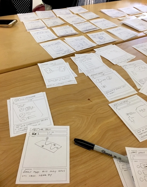 With our problem area defined, we started thinking of potential ways to solve them. We created over 150 concept cards addressing the needs and goals during the four stages of volunteering we outlined in our experience map.